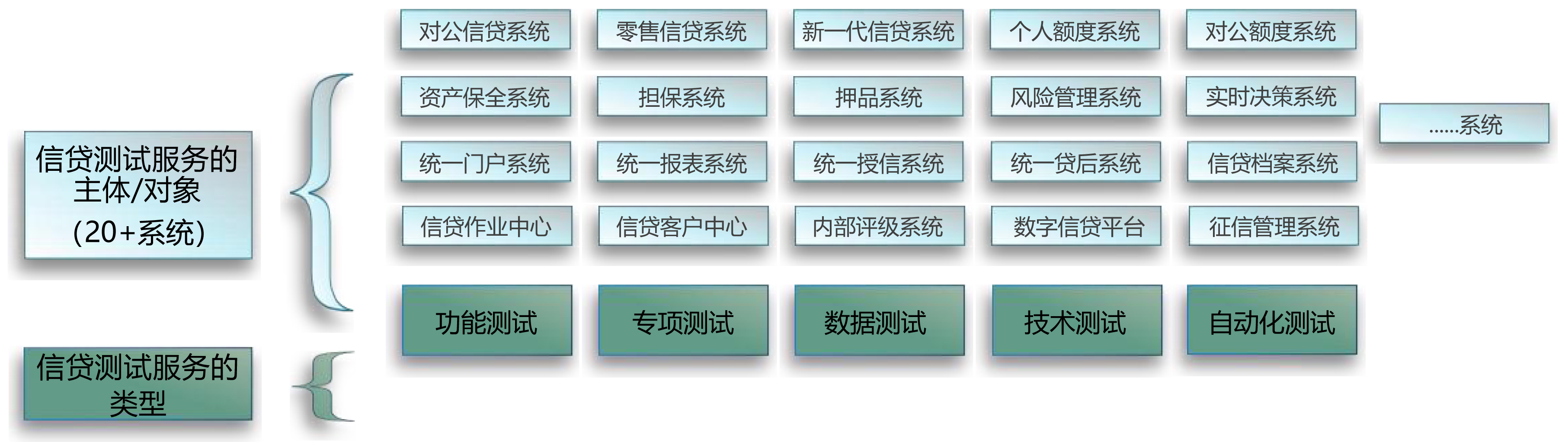 提供全面的測試服務(wù),涵蓋新信貸、對公/零售信貸等20+信貸類系統(tǒng),以及功能、性能、數(shù)據(jù)、自動化等類型測試。