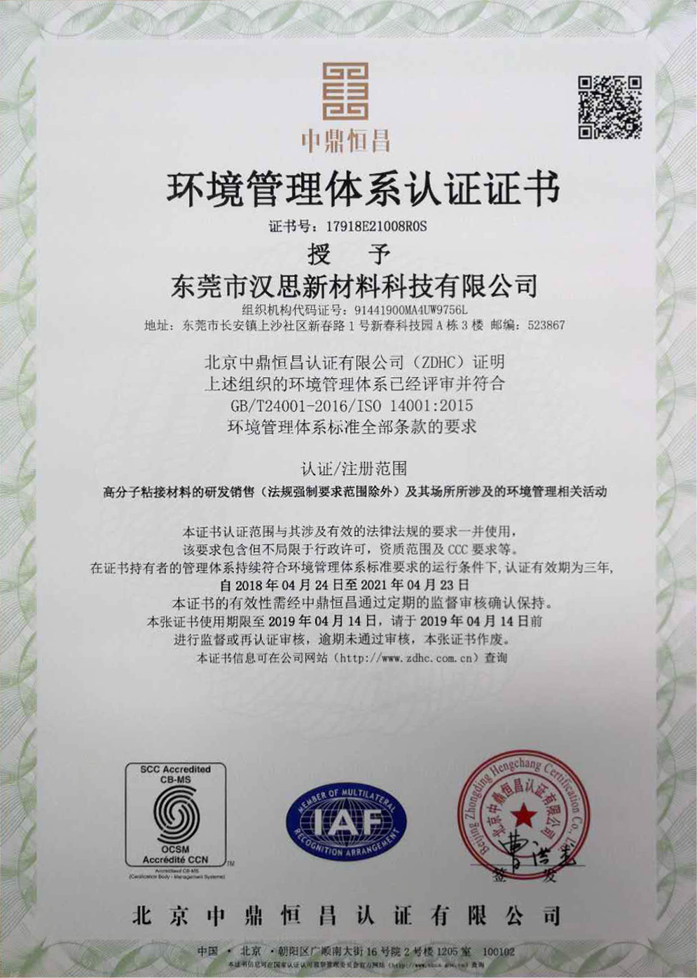 ISO14001:2015認(rèn)證。