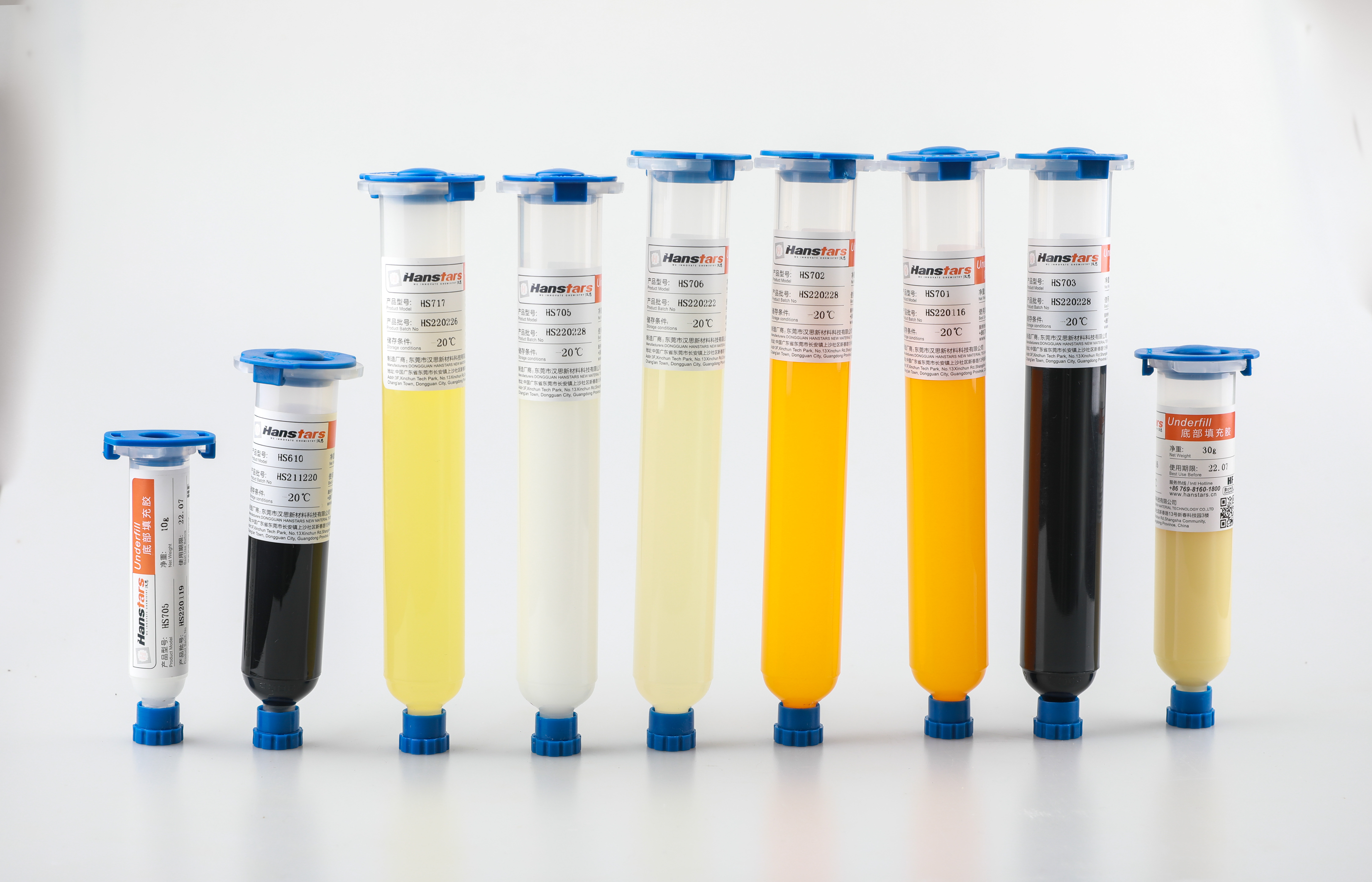 針對目前主流的電池保護板封裝工藝以及性能需求,漢思新材料能夠提供可靠的電子封裝材料產品及解決方案。公司自主研制Underfill 底部填充封裝材料,品質媲美國際先進水平,具有粘接強度高,適用材料廣,黏度低、固化快、流動性高、返修性能佳等諸多優點,已被廣泛應用于新能源汽車、智能終端、消費類電子的手機藍牙模塊芯片與智能穿戴芯片填充、指紋識別模組與攝像模組芯片封裝、鋰電池保護板芯片封裝等生產環節上,可有效起到加固、防跌落等作用。