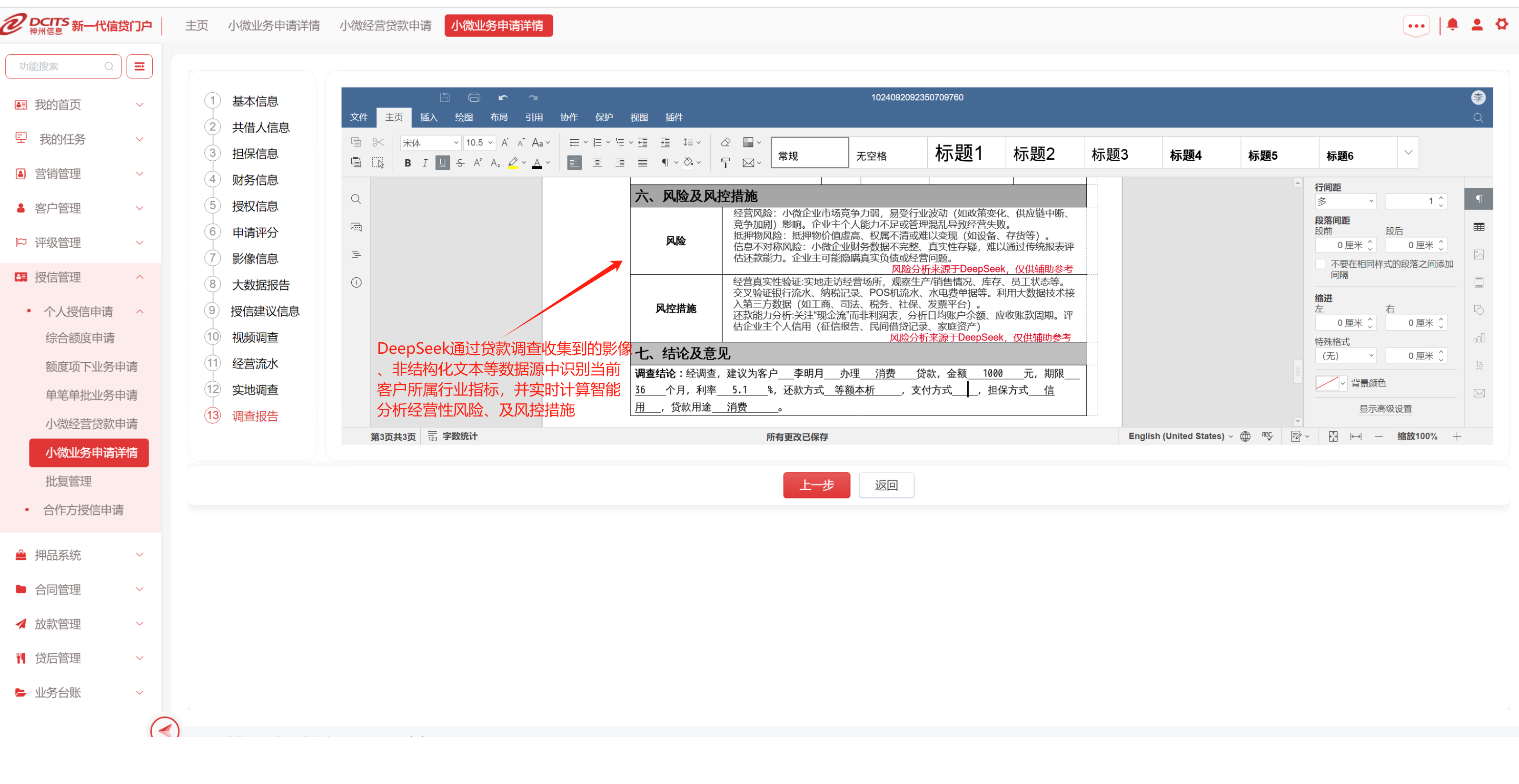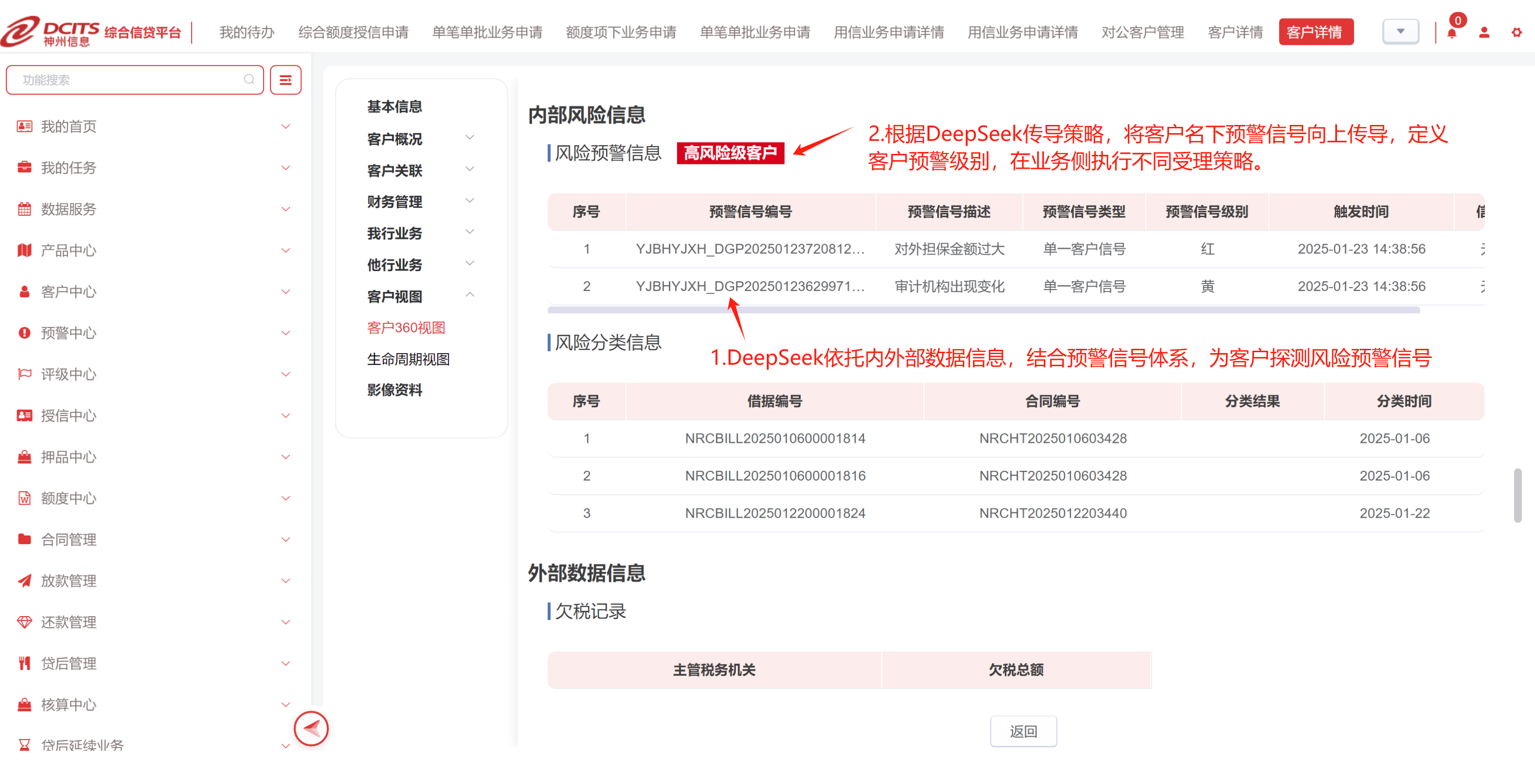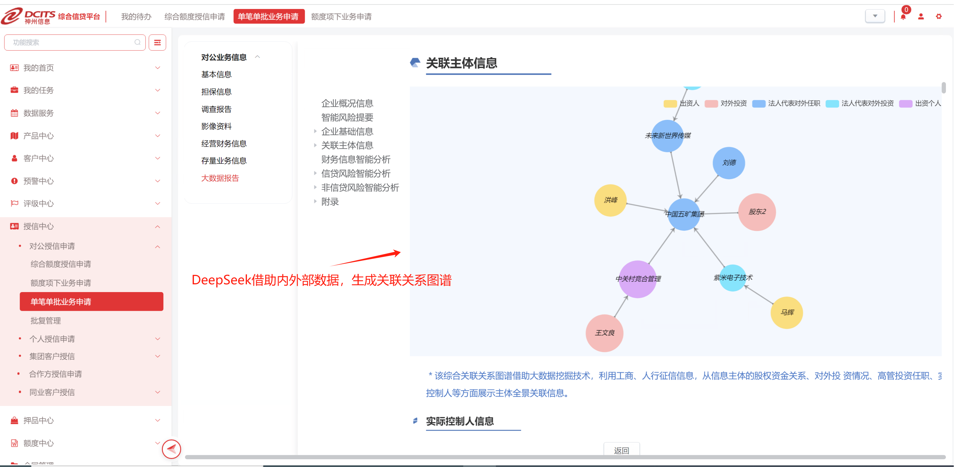 神州信息通過接入國產(chǎn)開源大模型DeepSeek,成功研發(fā)“智能綜合信貸系統(tǒng)”。該系統(tǒng)依托DeepSeek大模型的強(qiáng)大能力,實(shí)現(xiàn)了多模態(tài)解析、動態(tài)建模與實(shí)時預(yù)警等能力提升,從而對信貸業(yè)務(wù)全流程進(jìn)行精準(zhǔn)決策與效率躍升。在具體應(yīng)用中,系統(tǒng)重點(diǎn)聚焦于“非標(biāo)數(shù)據(jù)轉(zhuǎn)化、供應(yīng)鏈交易驗(yàn)證、軟信息量化、行業(yè)風(fēng)險監(jiān)控、客戶畫像精準(zhǔn)營銷”五大場景,并在這些領(lǐng)域?qū)崿F(xiàn)了突破性進(jìn)展。